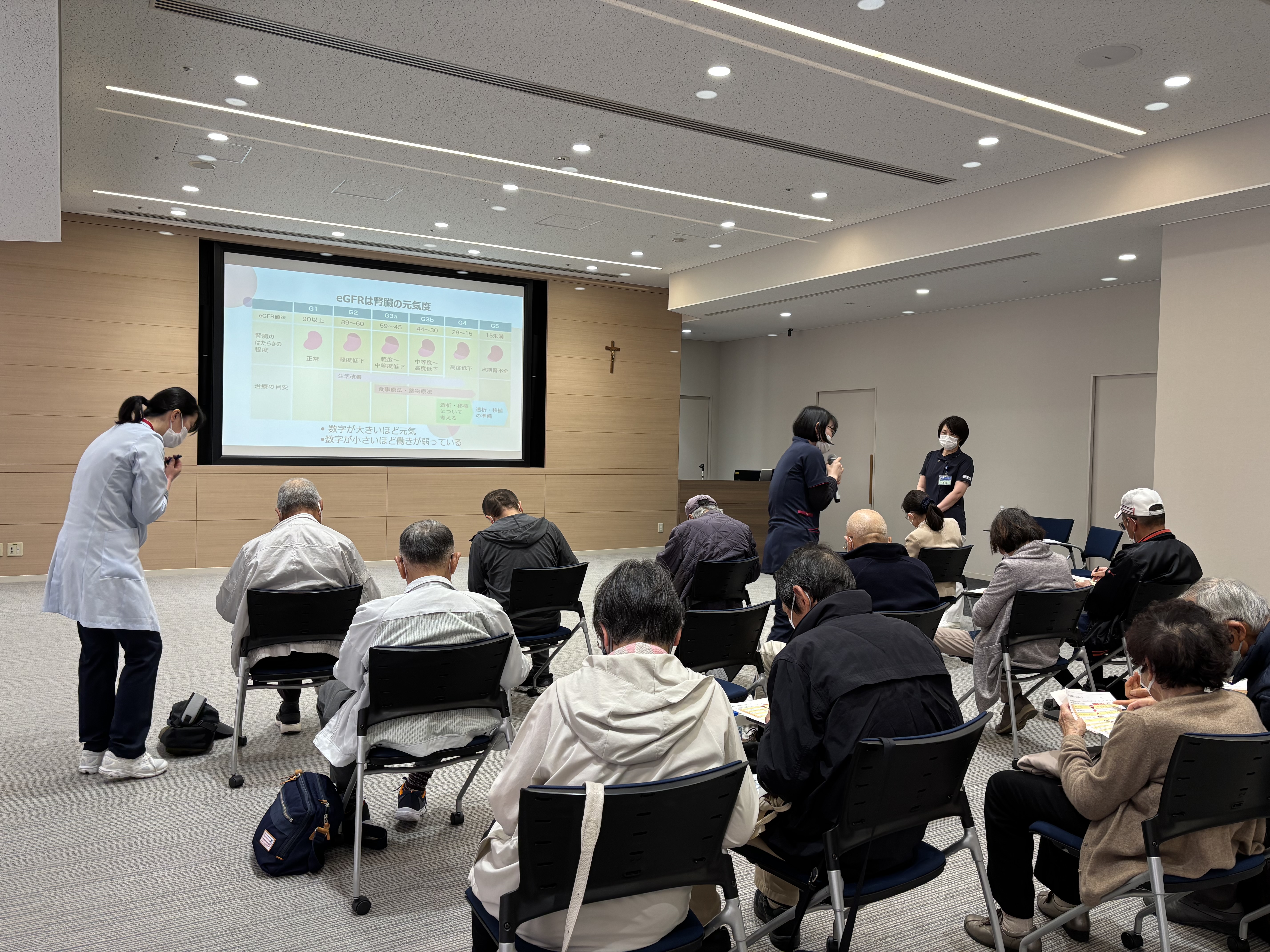 管理栄養士による美味しい減塩食の作り方についてのお話や、看護師による腎機能のわかりやすい読み方についてをお話させて頂きました。
